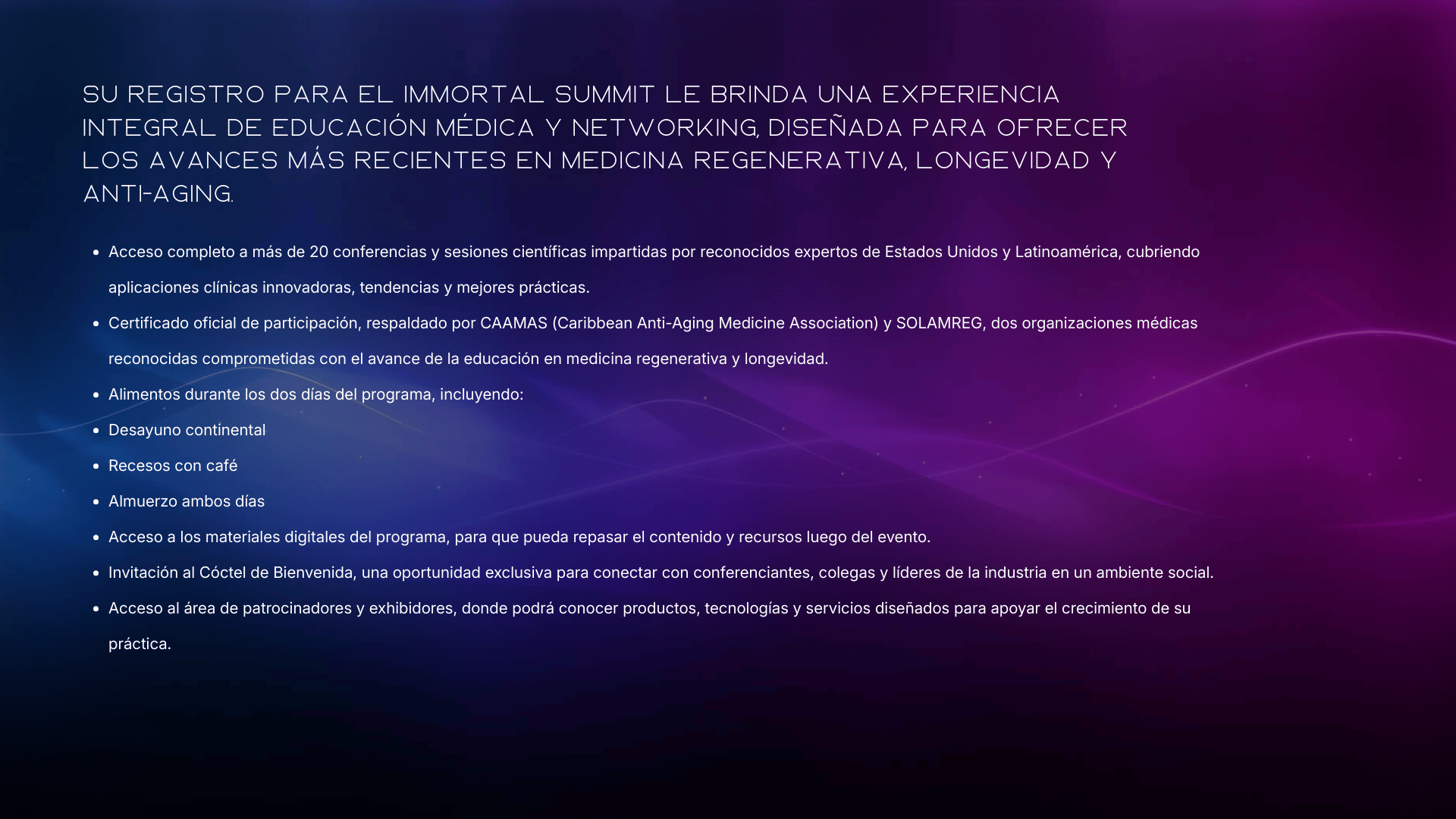 Codo a codo con el V Congreso Latinoamericano de Medicina Regenerativa – SOLAMREG, este encuentro une a los profesionales, científicos y visionarios que están redefiniendo la medicina, la longevidad extrema y el bienestar humano.